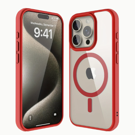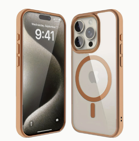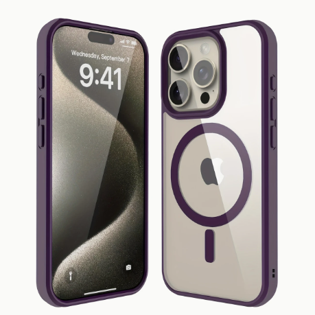 L'étui anti-choc présente un design mince et transparent avec un support de chargement sans fil magnétique.