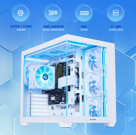 NINGMEI Gaming Desktop pour Ryzen 7 5700G, Vega8, 16 Go de mémoire DDR4, 1 To SSD, 7 ventilateurs RGB, carte mère intégrée de l'alimentation, prise standard européenne, aucune batterie requise .